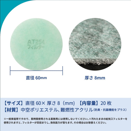 給気口グリル用【AT254】フィルター「QB1」サイズ 20枚入り 大きさ:Φ60mm 厚さ:8mm