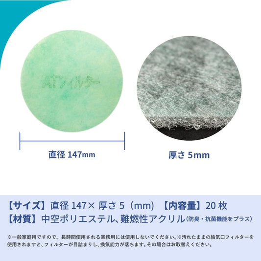 給気口グリル用【AT254】フィルター「QSE4」サイズ 20枚入り 大きさ:Φ146mm 厚さ:8mm