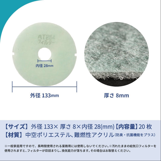 給気口グリル用【AT254】フィルター「QSE1」サイズ 20枚入り 大きさ:Φ143mm/Φ17mm 厚さ:8mm 穴あき