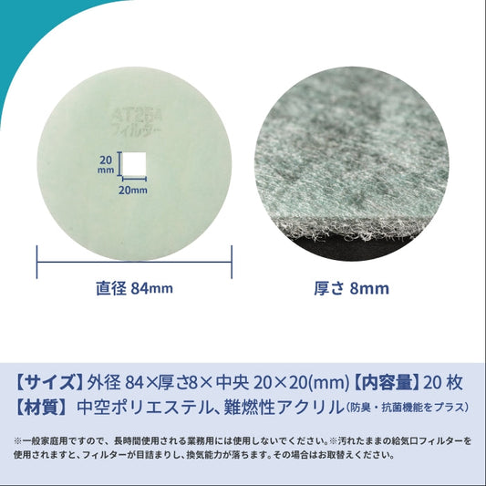給気口グリル用【AT254】フィルター「QP13」サイズ 20枚入り 大きさ:Φ84mm/□19mm 厚さ:8mm 内径□穴あき
