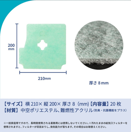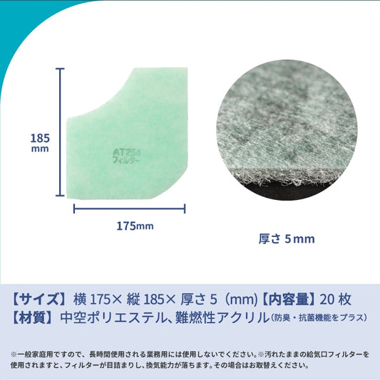 給気口グリル用【AT254】フィルター「QK17」サイズ 20枚入り 大きさ:ヨコ175mm x タテ185mm 厚さ:8mm