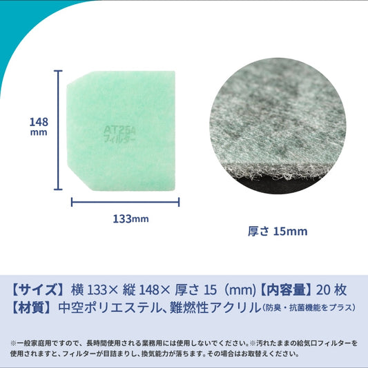 給気口グリル用【AT254】フィルター「QN13」サイズ 20枚入り 大きさ:ヨコ148mm x タテ135mm 厚さ:8mm 六角変形