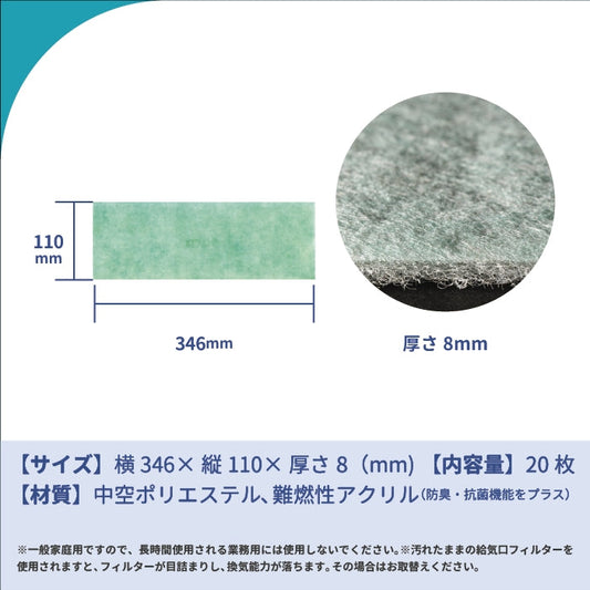給気口グリル用【AT254】フィルター「QM16」サイズ 20枚入り 大きさ:ヨコ346mm x タテ110mm 厚さ:8mm ロスナイ用フィルター