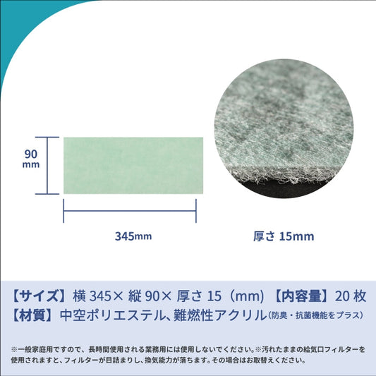 給気口グリル用【AT254】フィルター「QM25」サイズ 20枚入り 大きさ:ヨコ345mm x タテ90mm 厚さ:15mm