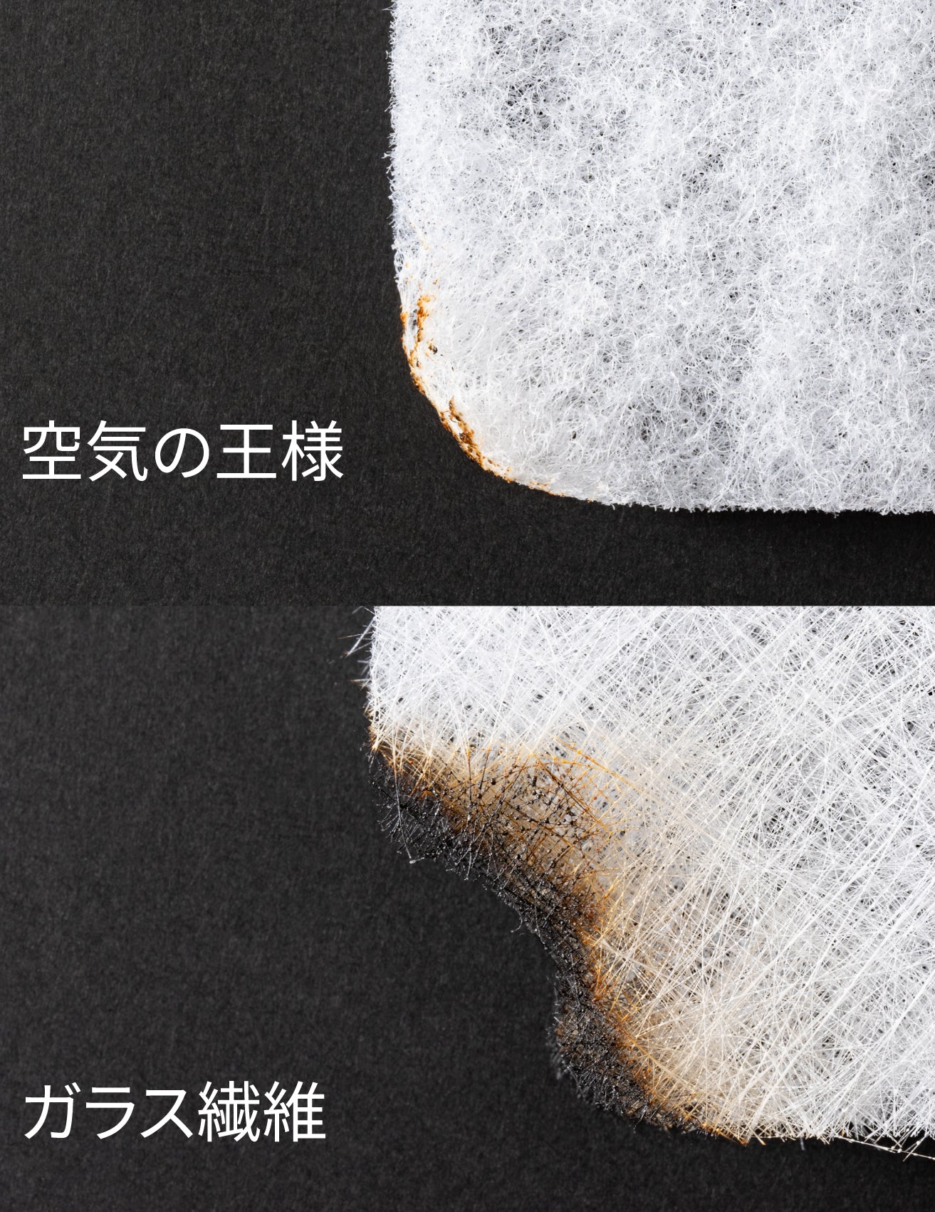 空気の王様のフィルターは、そうした点に配慮し、ガラス繊維を使用しない素材を採用しています。