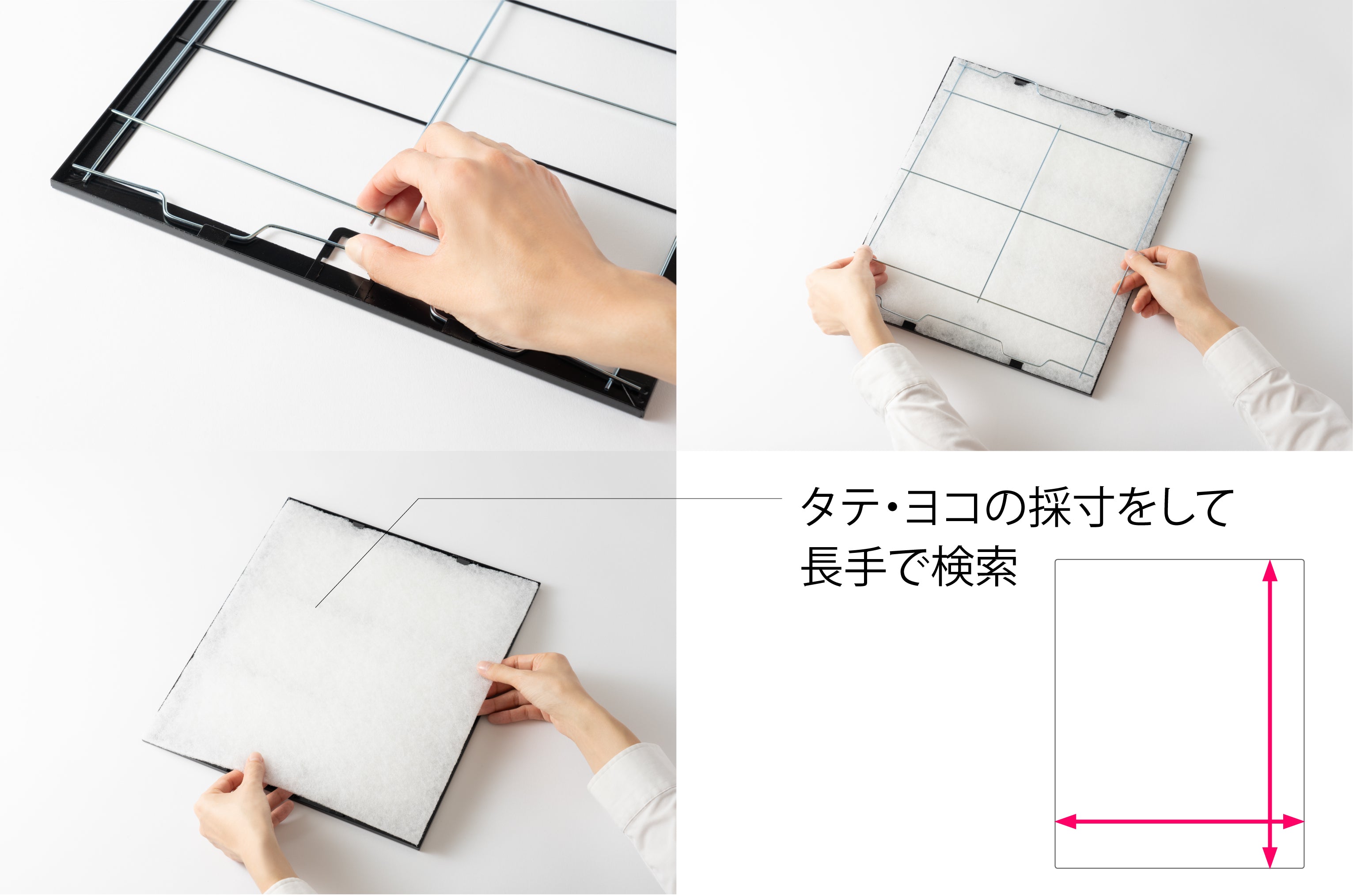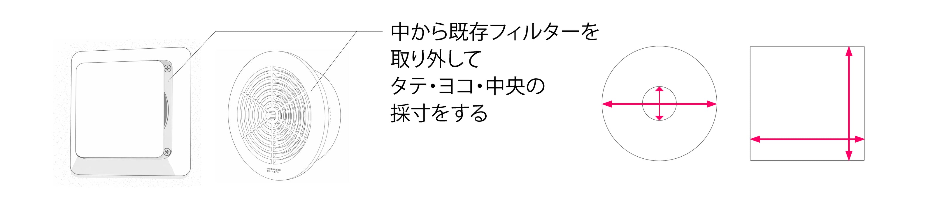 既存のフィルターの形状に応じて、それぞれ必要なサイズを測ります。